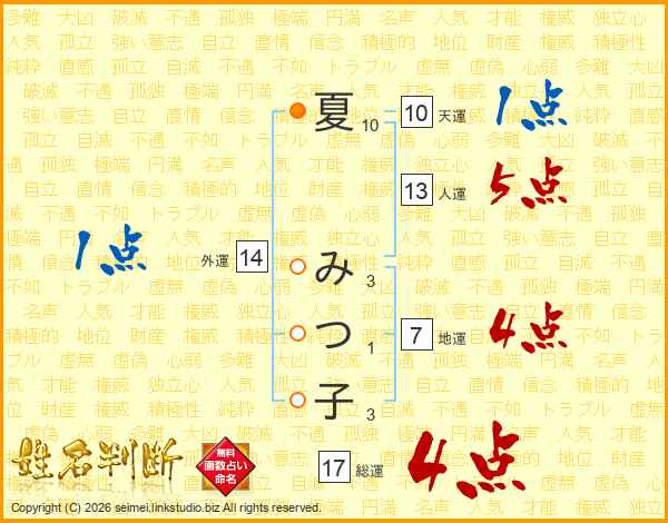 夏みつ子さんの総運は17画の4点!