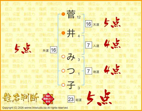 菅井みつ子さんの外運は16画の5点!