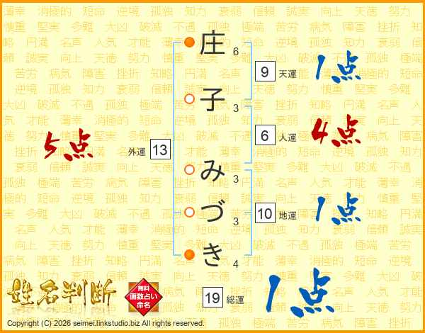庄(6画)子(3画) み(3画)づ(3画)き(4画)