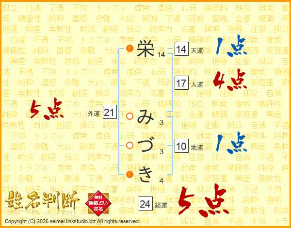 栄(14画) み(3画)づ(3画)き(4画)