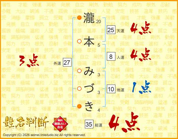 瀧本みづきさんの天運は25画の4点!