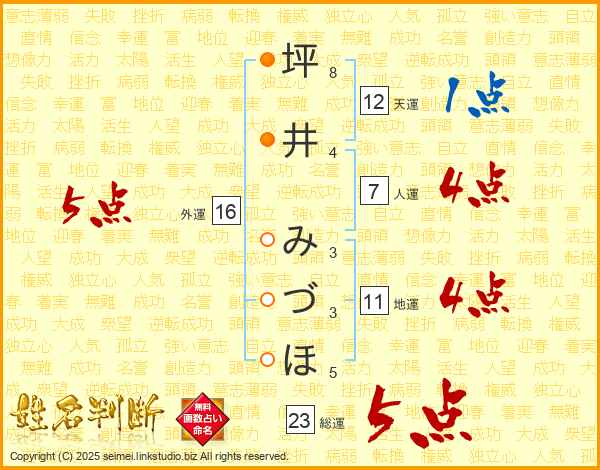 坪(8画)井(4画) み(3画)づ(3画)ほ(5画)