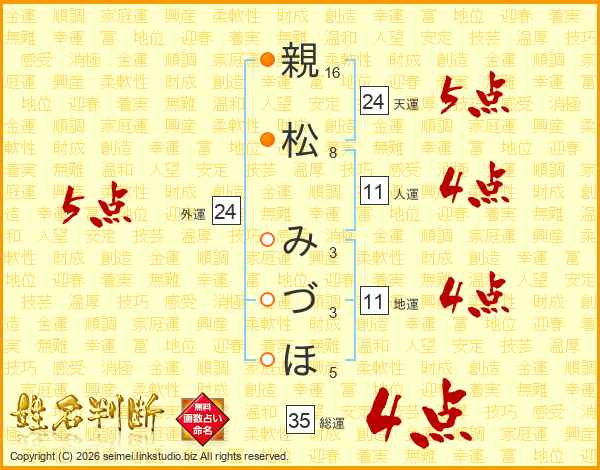 親松みづほさんの総運は35画の4点!