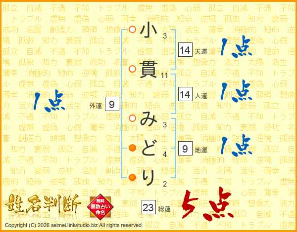 小貫みどりさんの総運は23画の5点!