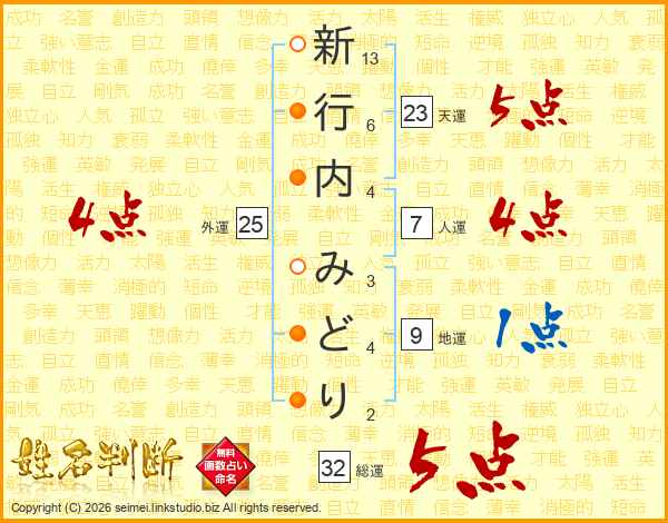 新行内みどりさんの総運は32画の5点!