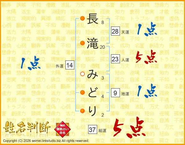 長(8画)滝(20画) み(3画)ど(4画)り(2画)