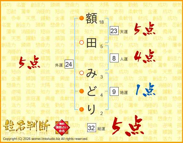 額田みどりさんの総運は32画の5点!