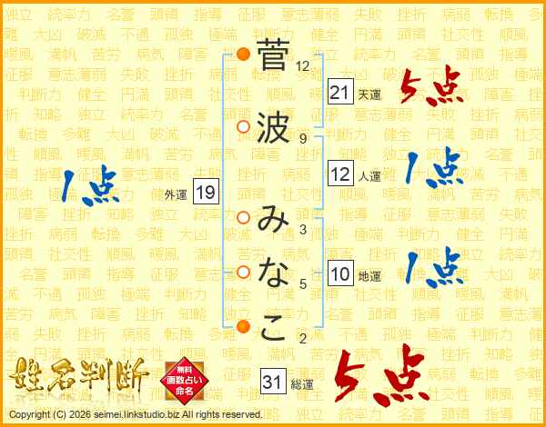 菅波みなこさんの総運は31画の5点!