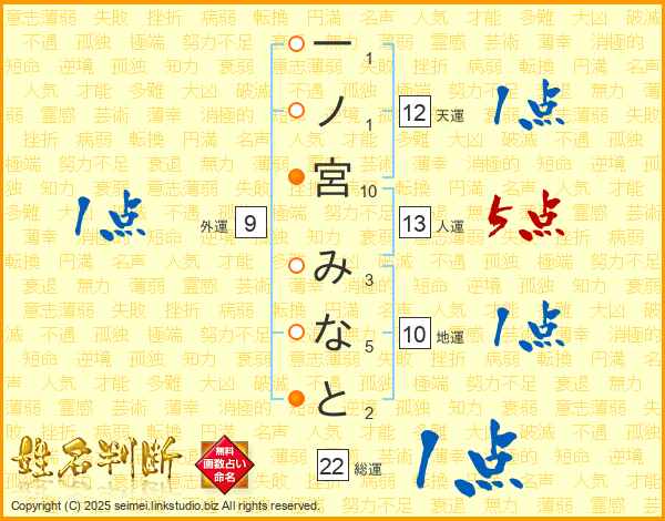 一ノ宮みなとさんの総運は22画の1点!
