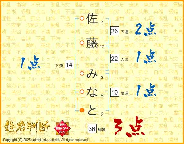 佐(7画)藤(19画) み(3画)な(5画)と(2画)