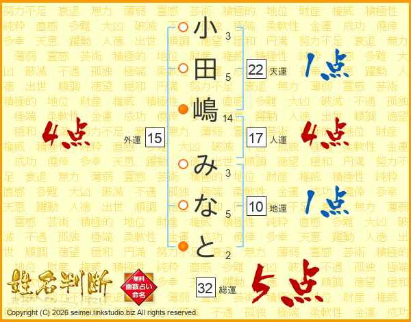 小(3画)田(5画)嶋(14画) み(3画)な(5画)と(2画)