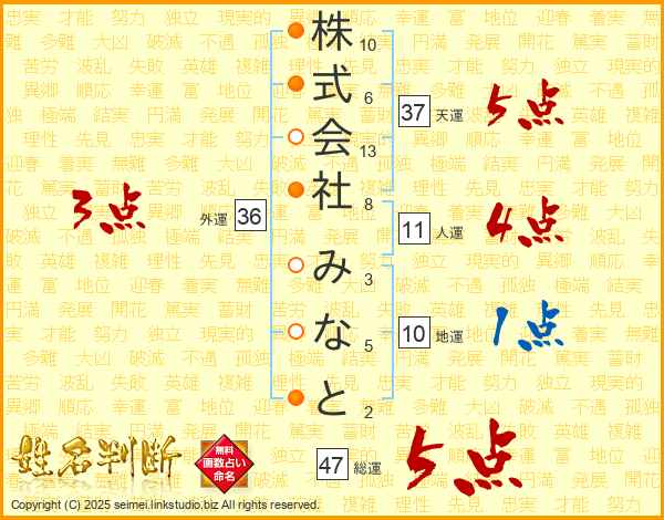 株(10画)式(6画)会(13画)社(8画) み(3画)な(5画)と(2画)