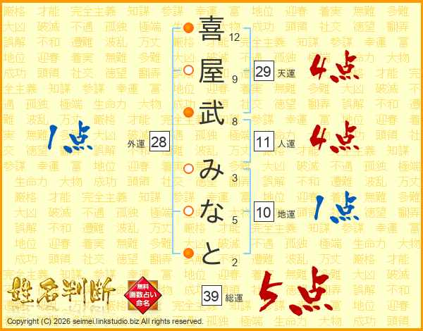 喜屋武みなとさんの総運は39画の5点!