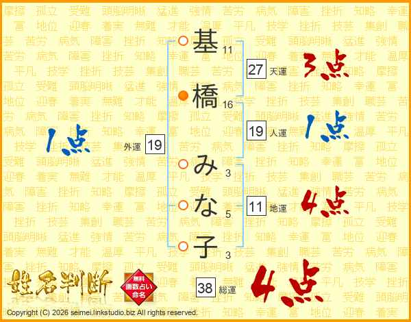 基橋みな子さんの総運は38画の4点!