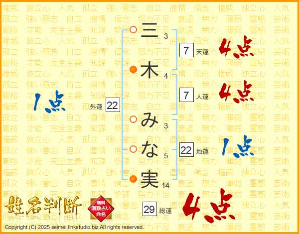 三(3画)木(4画) み(3画)な(5画)実(14画)