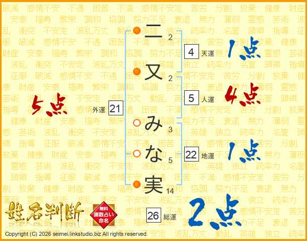 二又みな実さんの総運は26画の2点!