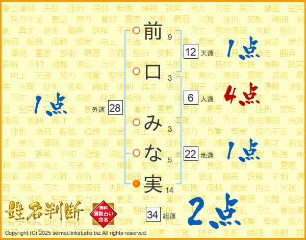 前(9画)口(3画) み(3画)な(5画)実(14画)