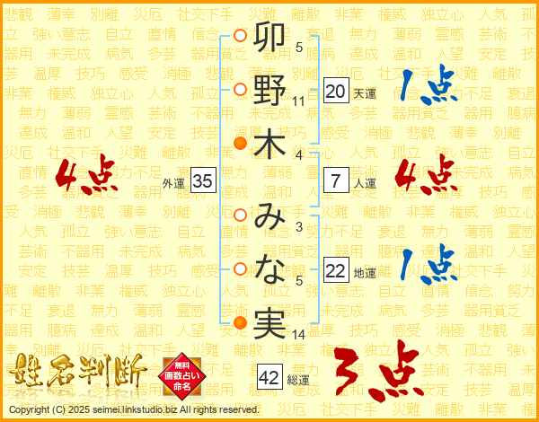卯野木みな実さんの総運は42画の3点!