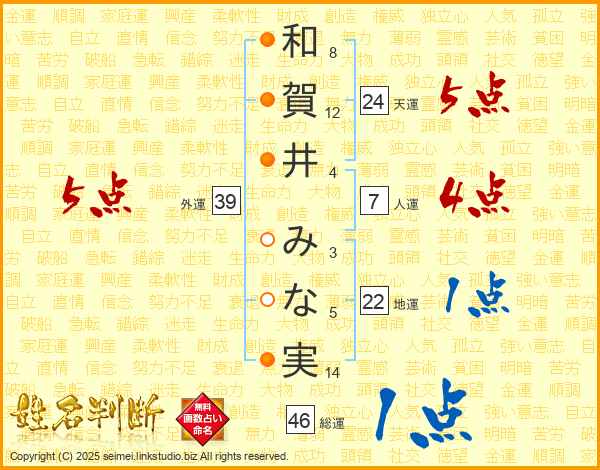和賀井みな実さんの外運は39画の5点!