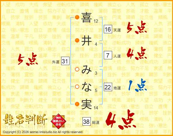 喜井みな実さんの外運は31画の5点!