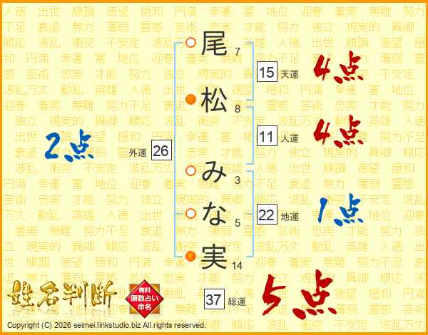尾松みな実さんの総運は37画の5点!