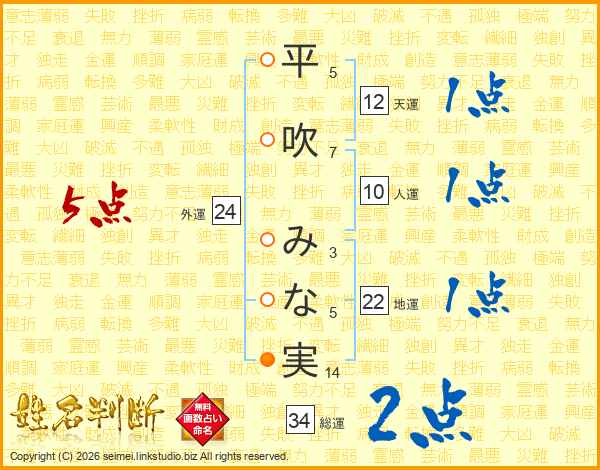 平吹みな実さんの外運は24画の5点!