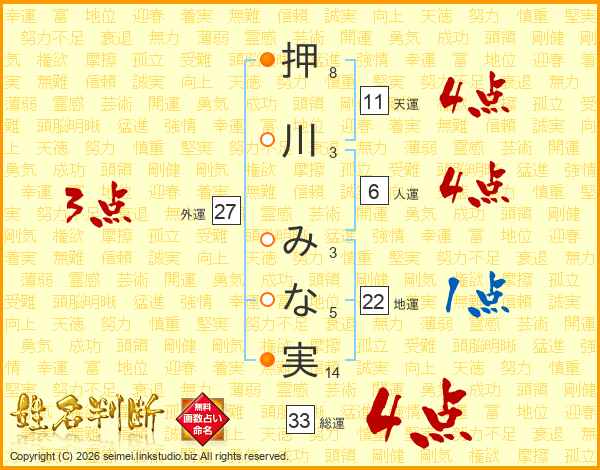 押川みな実さんの総運は33画の4点!