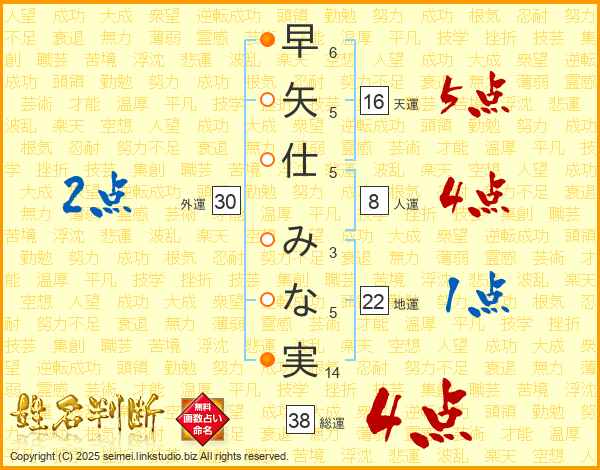 早矢仕みな実さんの総運は38画の4点!