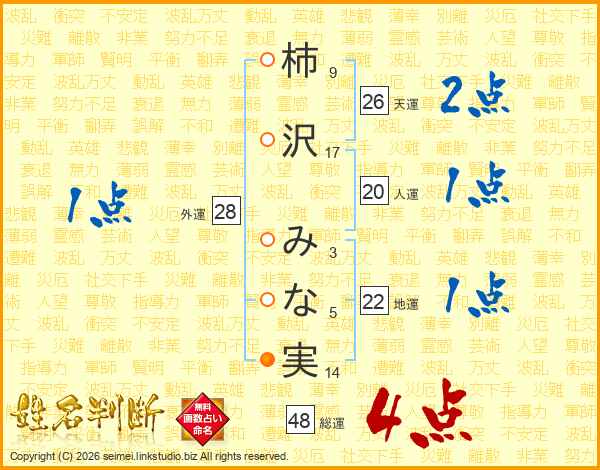 柿沢みな実さんの総運は48画の4点!