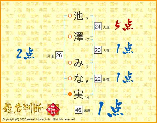 池澤みな実さんの総運は46画の1点!