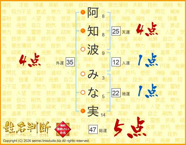 阿知波みな実さんの総運は47画の5点!