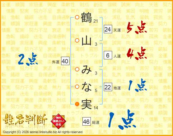 鶴山みな実さんの総運は46画の1点!