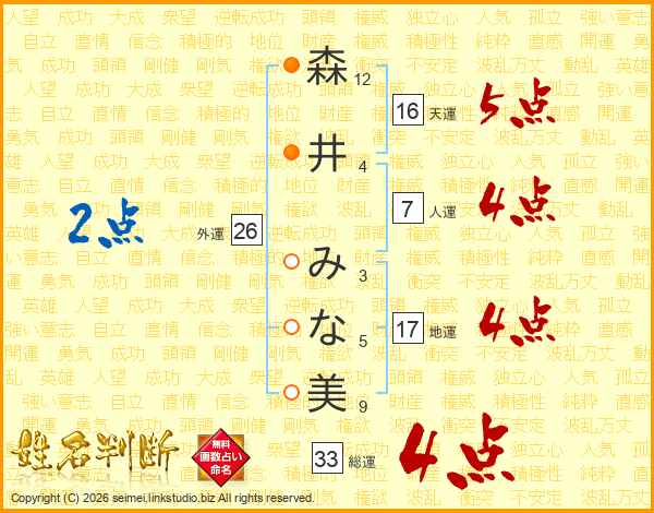 森井みな美さんの総運は33画の4点!