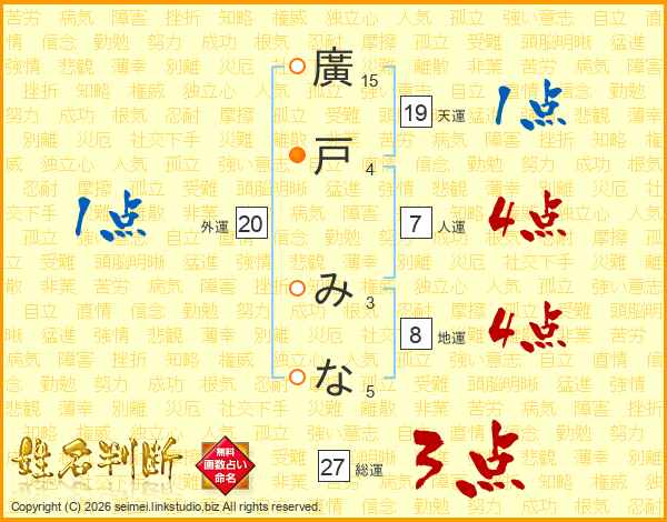 廣戸みなさんの人運は7画の4点!