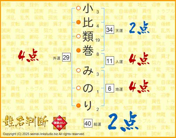 小(3画)比(4画)類(19画)巻(8画) み(3画)の(1画)り(2画)