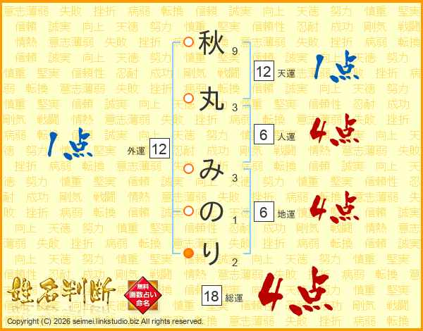 秋丸みのりさんの総運は18画の4点!