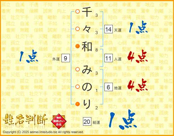 千(3画)々(3画)和(8画) み(3画)の(1画)り(2画)