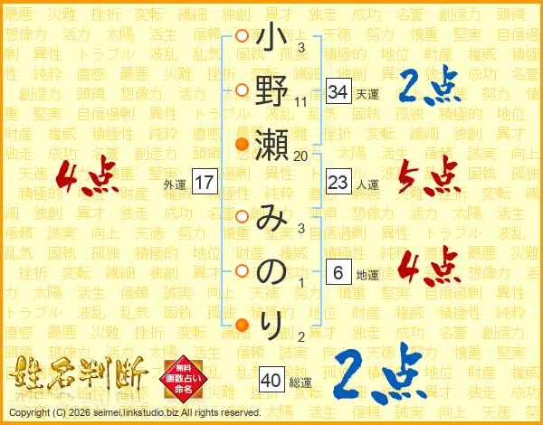 小野瀬みのりさんの外運は17画の4点!