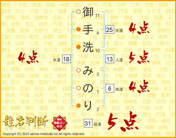 御手洗みのりさんの外運は18画の4点!