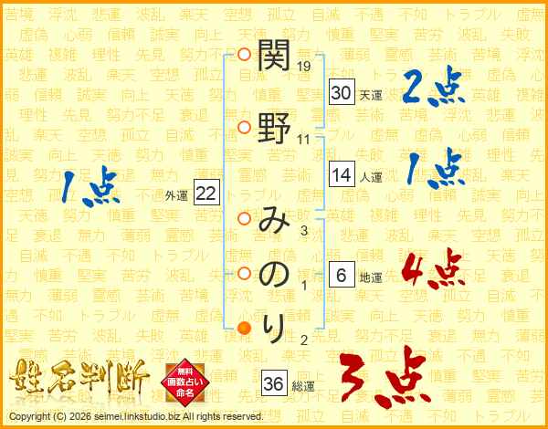 関野みのりさんの天運は30画の2点!