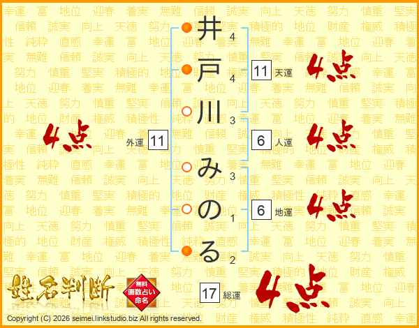井戸川みのるさんの総運は17画の4点!