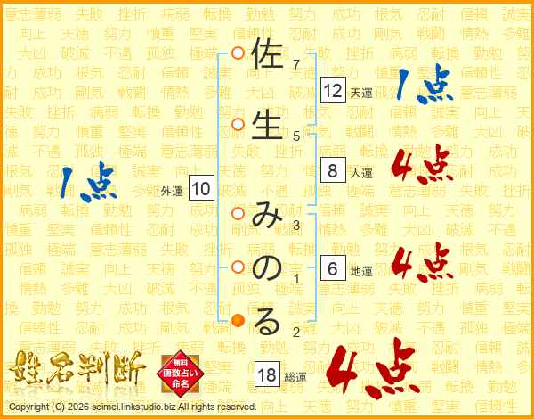 佐生みのるさんの総運は18画の4点!