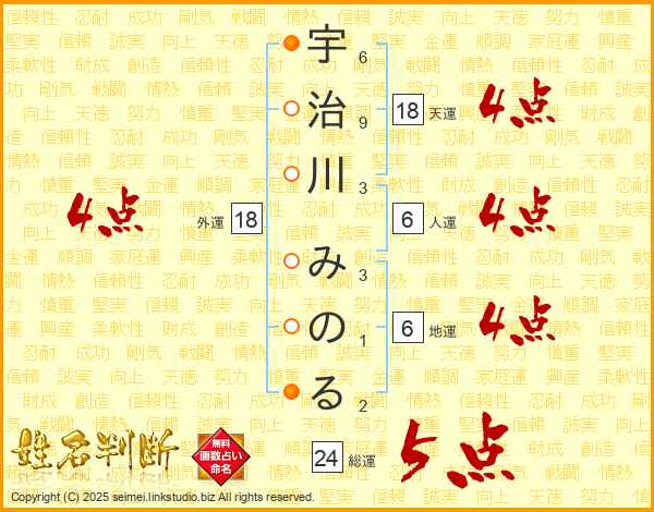 宇治川みのるさんの総運は24画の5点!