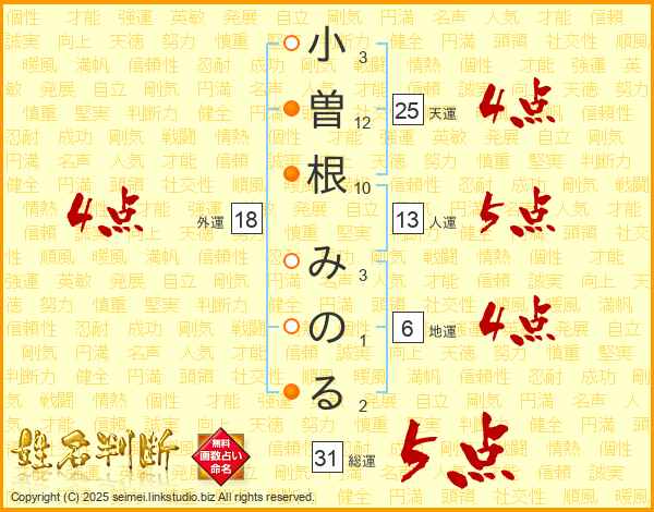 小曽根みのるさんの天運は25画の4点!