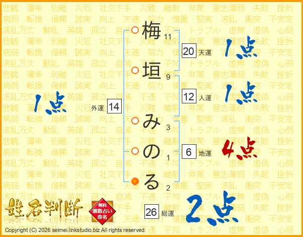 梅垣みのるさんの総運は26画の2点!