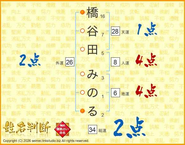 橋谷田みのるさんの総運は34画の2点!