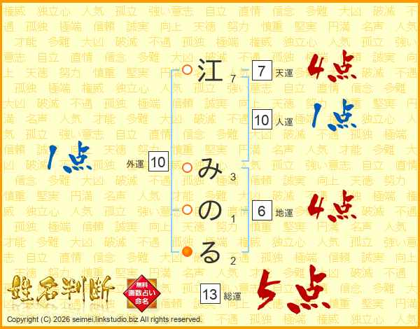 江みのるさんの総運は13画の5点!