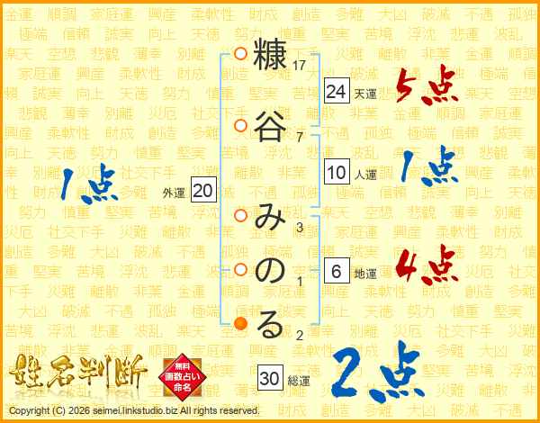 糠(17画)谷(7画) み(3画)の(1画)る(2画)