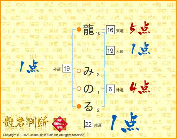 龍みのるさんの総運は22画の1点!