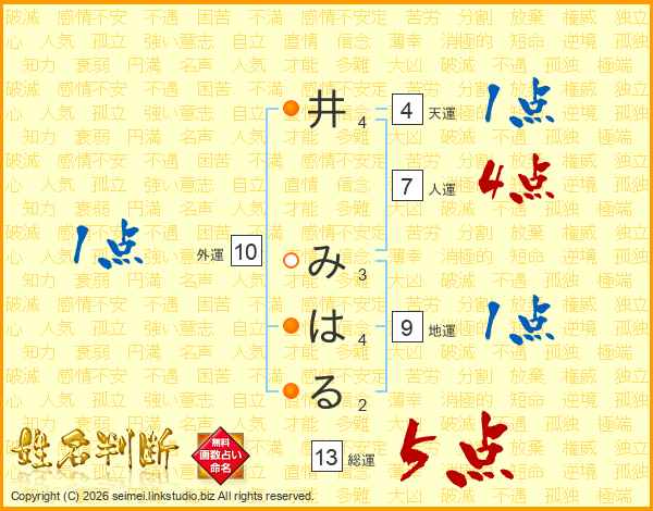 井みはるさんの総運は13画の5点!